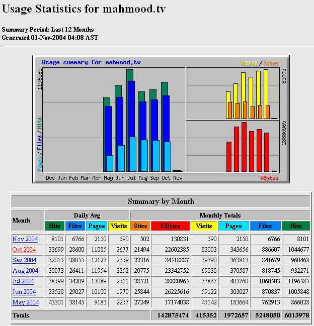 I forgot to check the stats for a while, and I looked today and am flabergasted. There has been over 2.6 million page views since April last year.. that’s in 18 months!! and for the last 5 months we receive about 1 million hits PER MONTH! And all this without counting the “administrator” hits, that is, the system does not log my visits as “hits” otherwise it probably will be in the zillions!