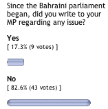 In a recent poll I wanted to know how many people actually bother to write parliament or their MP on any issue they felt strongly about. It turns out at about 17% of respondents actually did! Which I find very surprising, I thought the ratio would be closer to less than 5%.