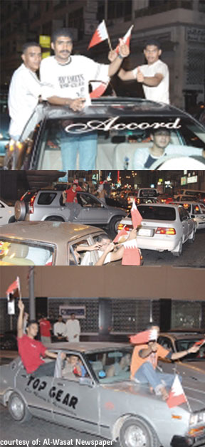 Like you I am thrilled to have Bahrain step closer to a berth at the Football World Cup alter. I really am. And I wouldn’t dream of standing in the way of people happily expressing their support for team and country, there is virtually nothing that moves me like seeing a see of the Red and White. This is Bahrain at its best. A spontaneous celebration.