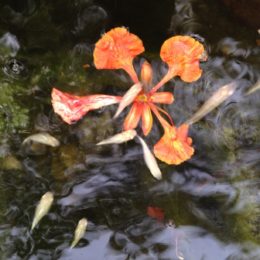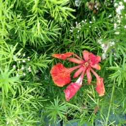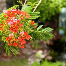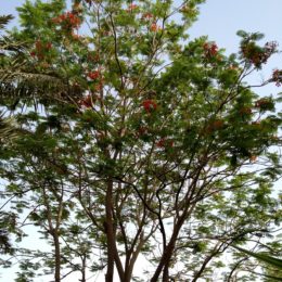 Only a couple of weeks ago this majestic tree adorning our front garden was bare. Naked. Unclothed. But within just a few days it has sprouted all of its leaves and buds which have now started to open up and, typical of this tree, started to shed the flowers all around it, sometimes making the lawn turn blood red with its lovely flowers.